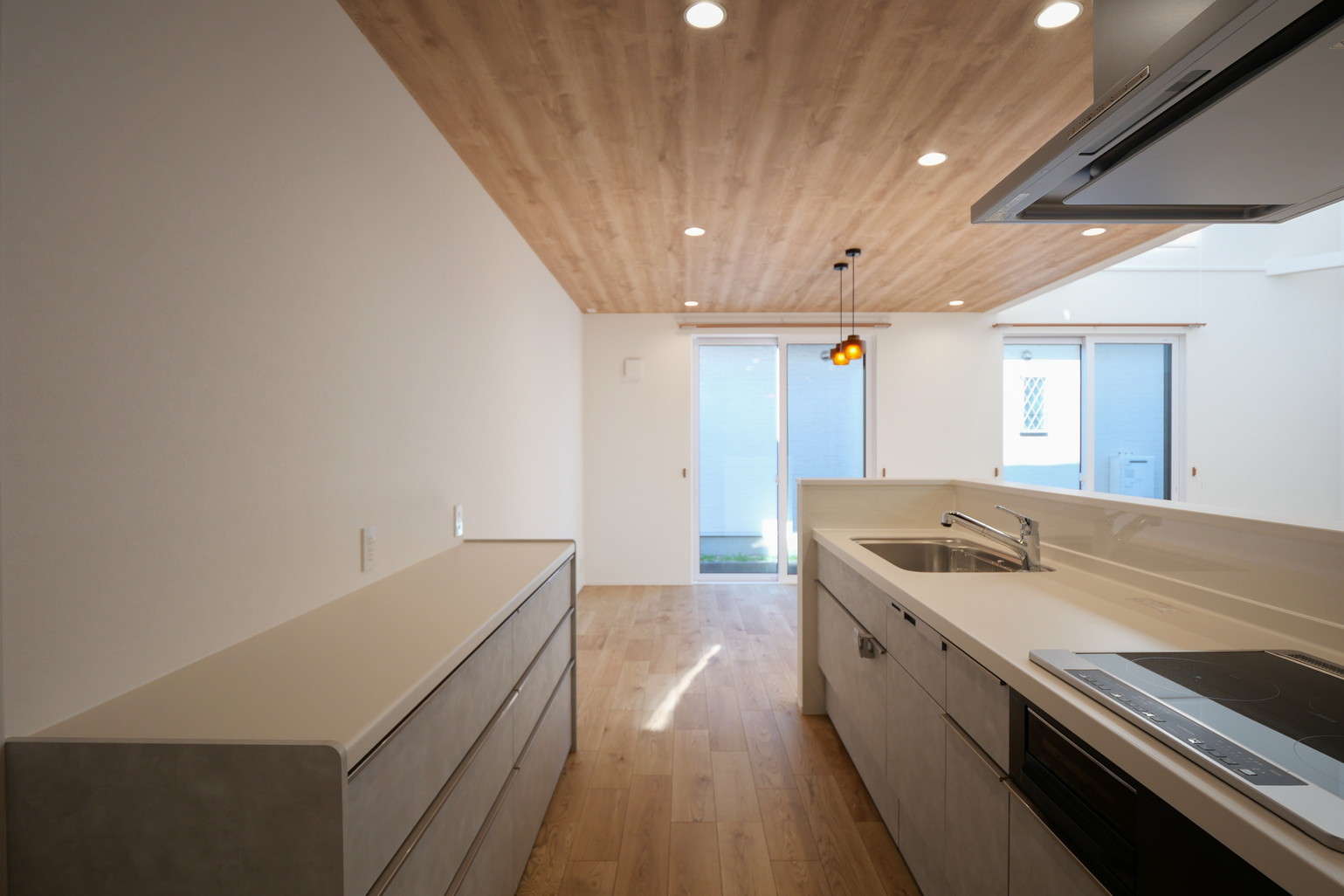 キッチンから和室、洋室へと繋がる間取りです。生活空間がフラットに広がることで階段の上り下りも必要なくなります。