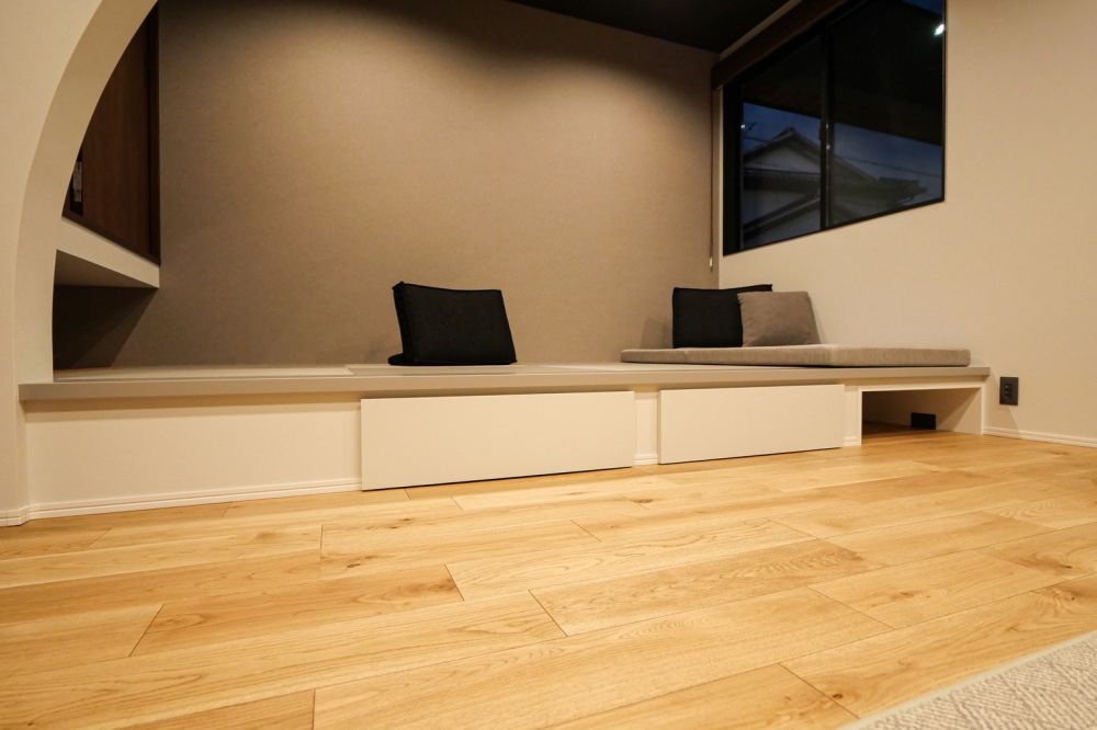 小上がり部分には引き出し収納を設置。