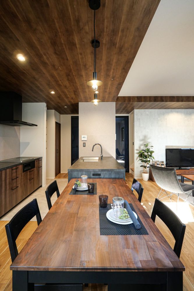 開放的な間取りに加え下がり天井を取り入れることで、自然と気持ちが落ち着く空間に仕上げました。