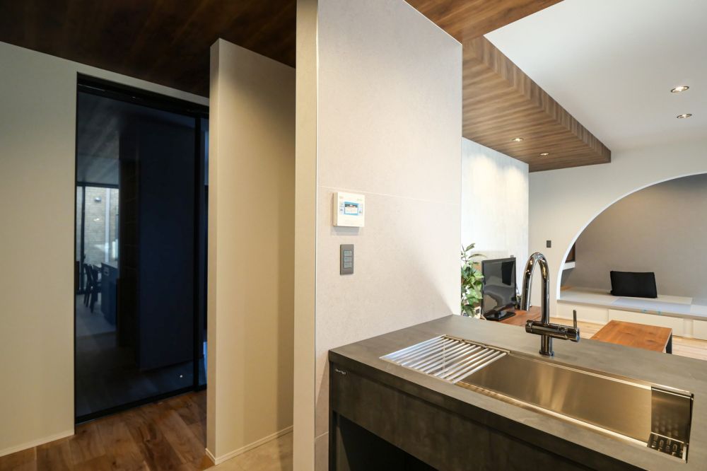 間口にはR状のラインを採用し、直線的になりがちな空間の中にアクセントを添えています。