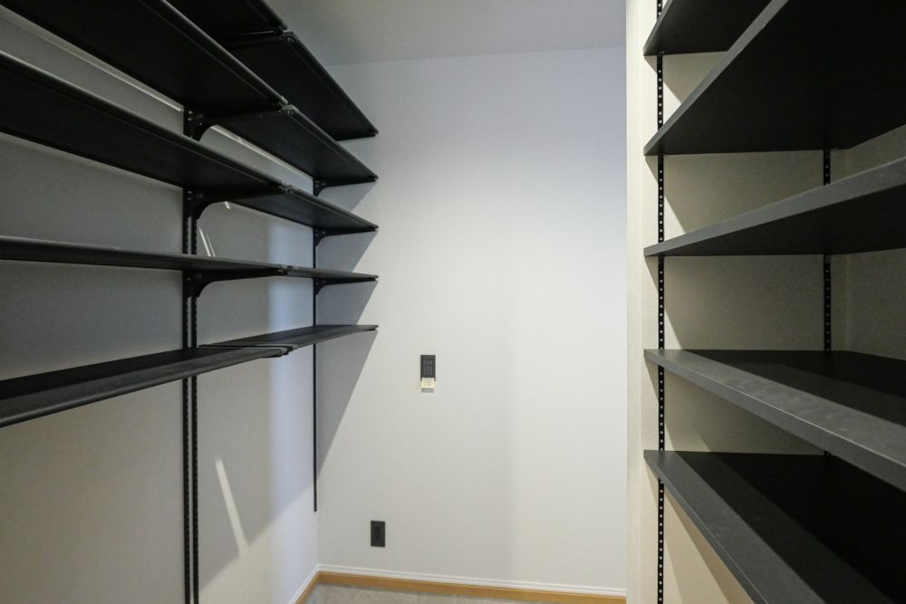 カップボードの並びには、パントリーを設置。
