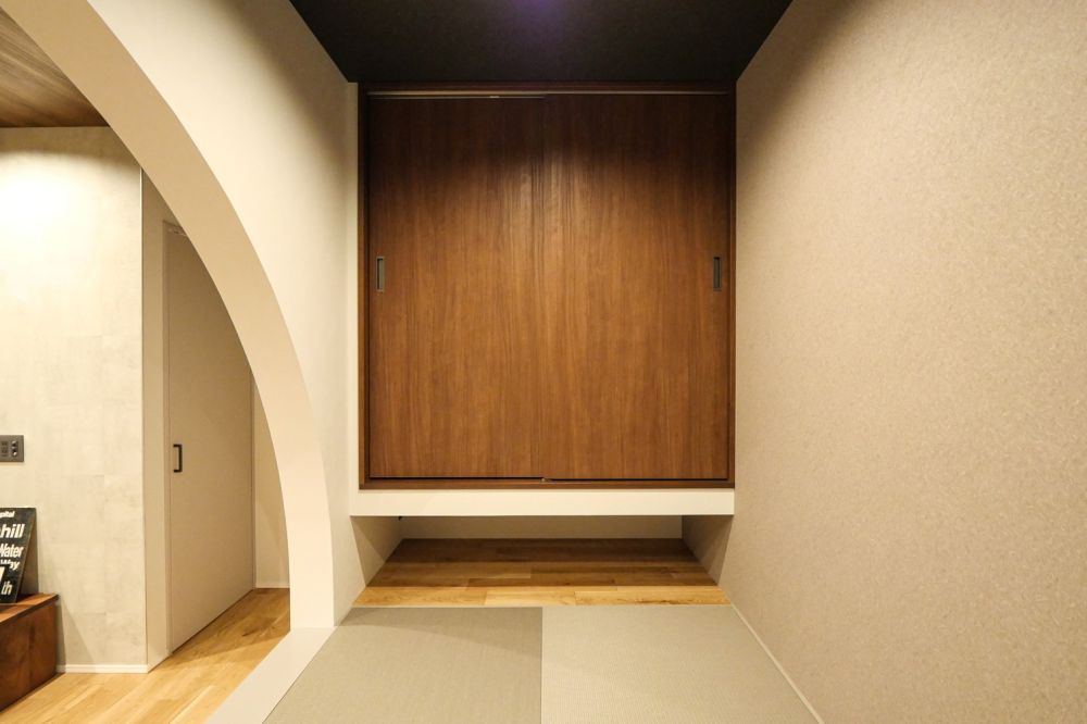 玄関は、来客用と家族用に動線を分けた2way仕様です。来客用の玄関にはニッチを設け、さりげなく装飾性を取り入れています。