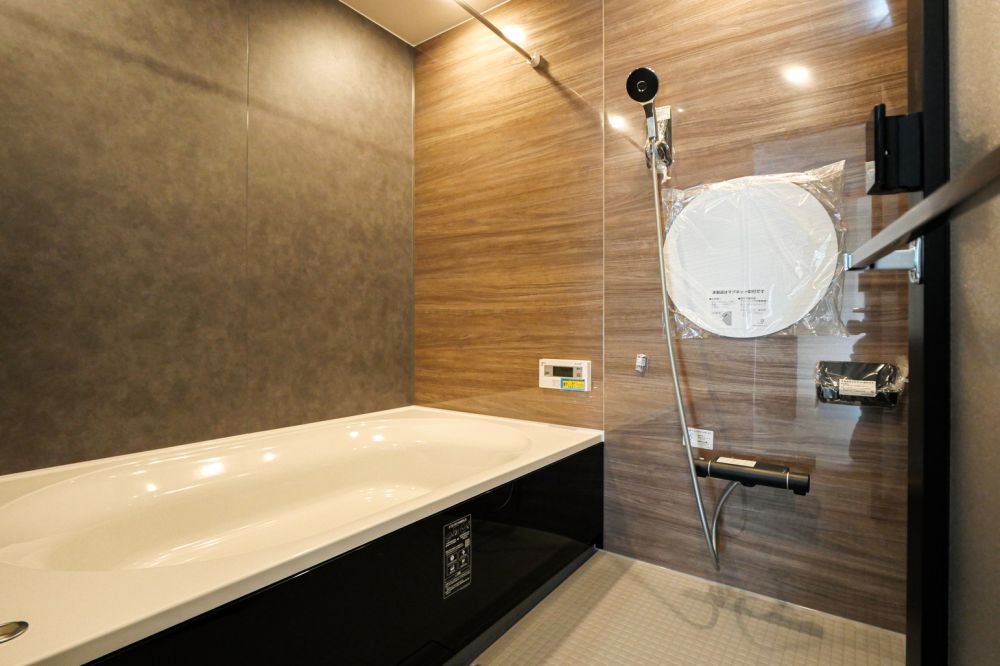 浴室の壁面全面にマグネットパネルを採用しており、洗面器などを浮かせて収納できるため、水垢汚れが溜まりにくいのも嬉しいポイントです。