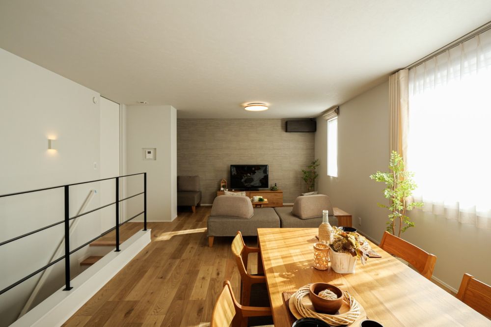 吹き抜けになった階段を上がると、21畳のリビング空間へ。