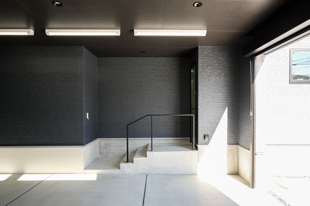 ガレージ内には、ご主人の趣味アイテムを置く予定です。壁面には棚を設置できるよう、あらかじめ計画しています。