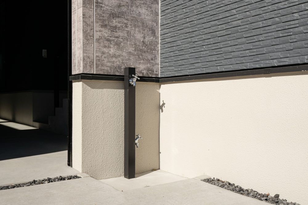 ガレージ横には水栓も設置しているので、洗車や掃除、アウトドア用品の洗浄など、さまざまなシーンで活躍します。