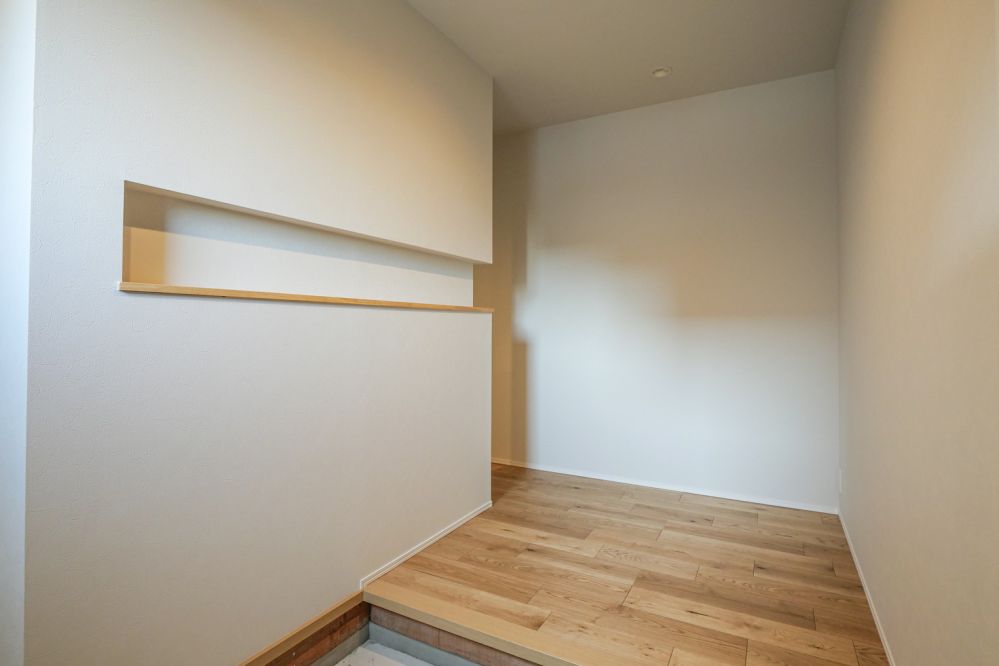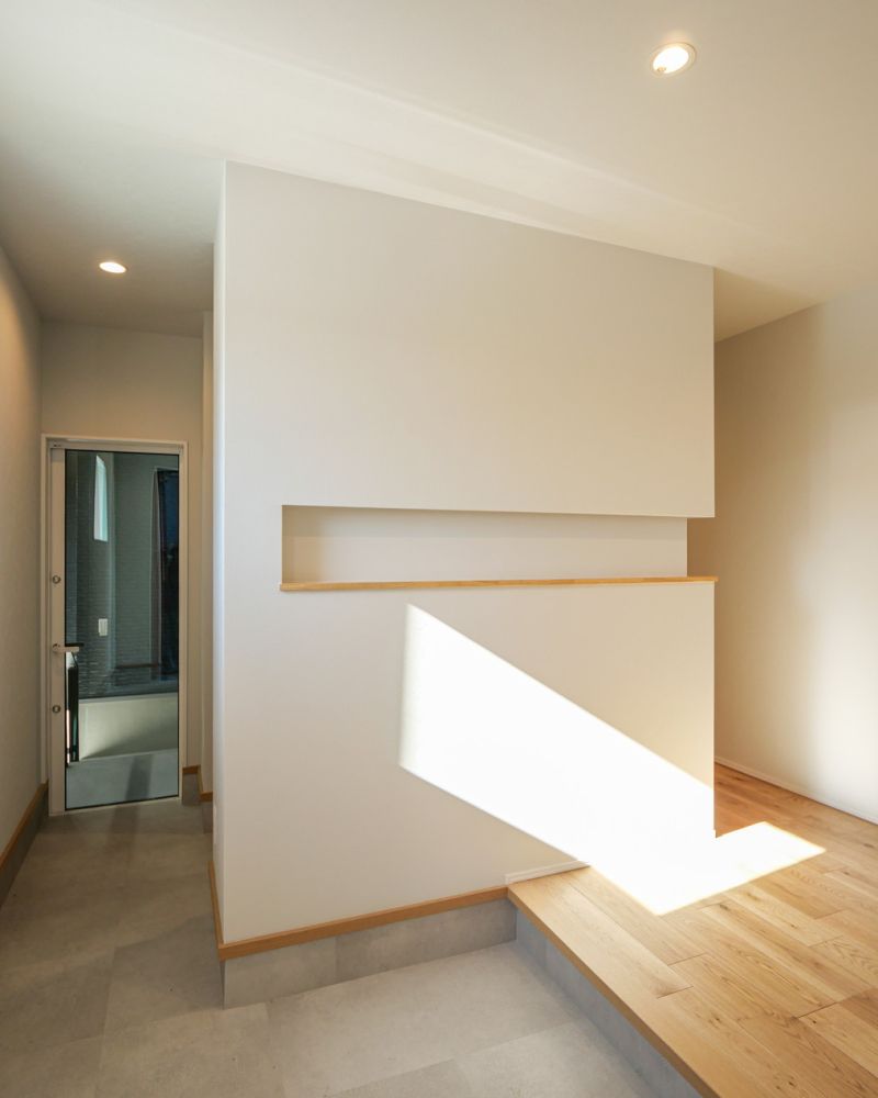 ゲスト側には、装飾性の高いL字型のニッチ収納を設け、さりげなく空間のアクセントとしています。