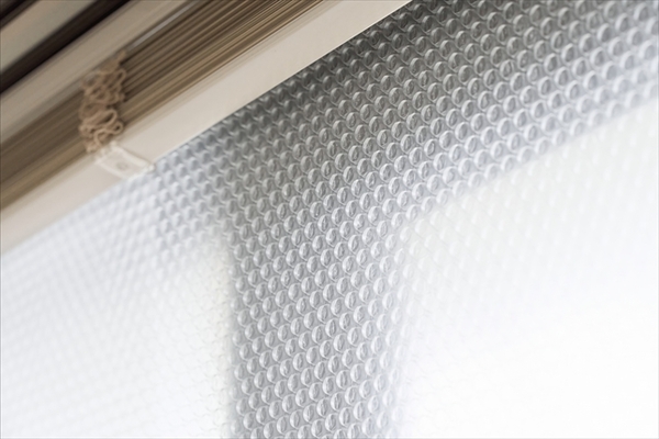 梱包用のプチプチ(気泡緩衝材)も断熱効果があります。設置方法は簡単で、窓のガラスやサッシ部分で、テープでプチプチを貼るだけ。