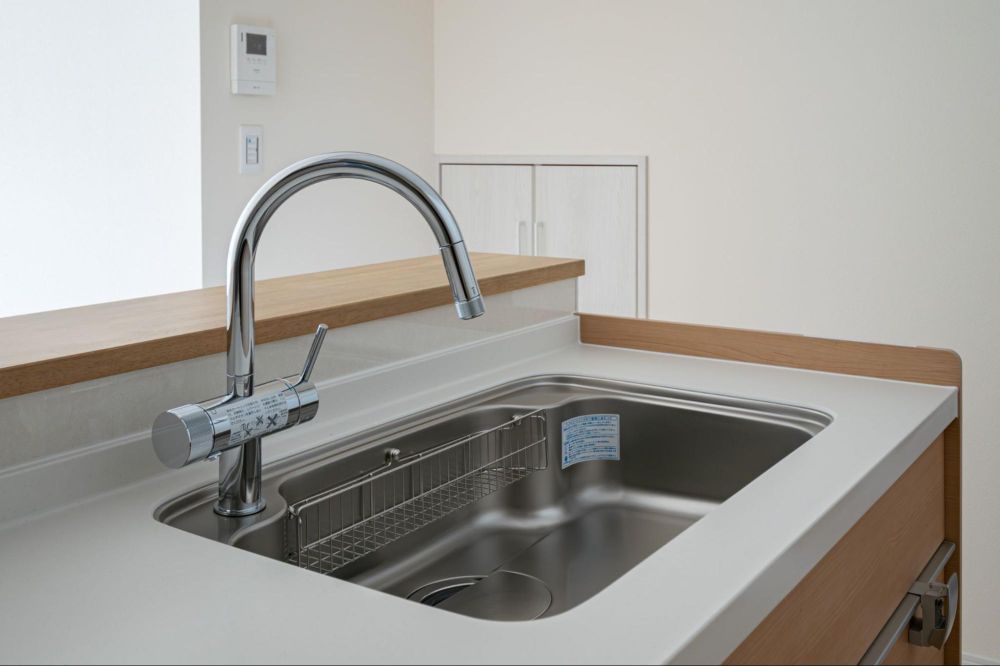 キッチンをスタイリッシュに見せてくれるだけでなく、吐水口が高い位置にあるため、シンクまわりの作業スペースも広く感じられます。