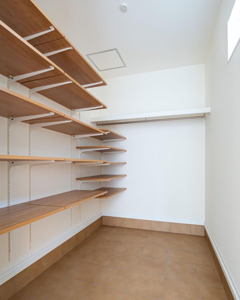 広々としたシューズインクロークは、家族の日用品をたっぷり収納できるだけでなく、物の出し入れの動線も便利です。