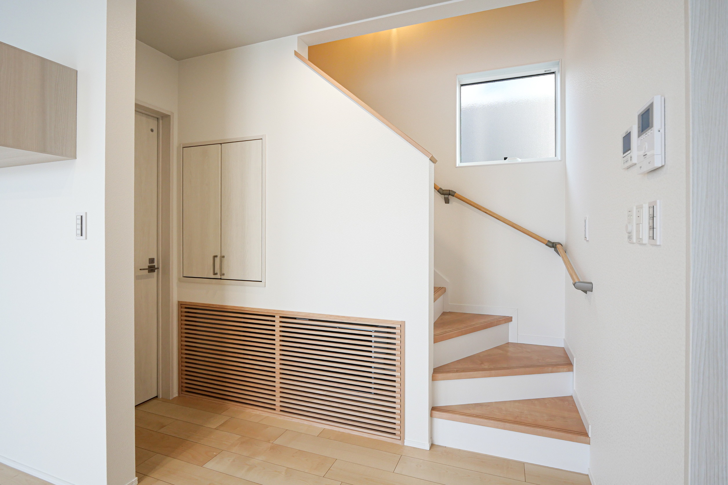 1階・2階ともに全館空調を採用し、家中どこでも快適に過ごせる環境に。ガス給湯器はウルトラファインバブル対応とし、暮らしの質を高めています。
