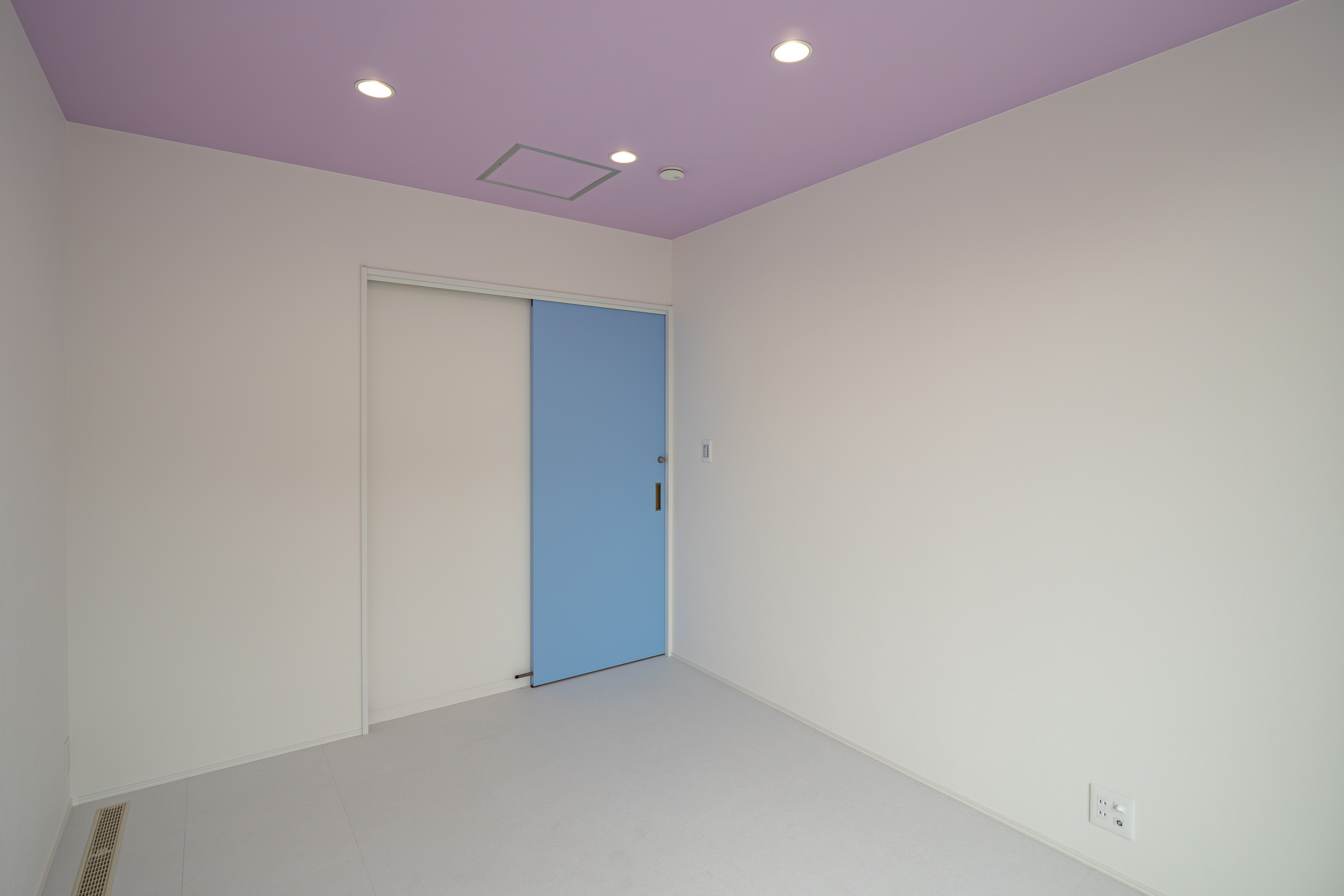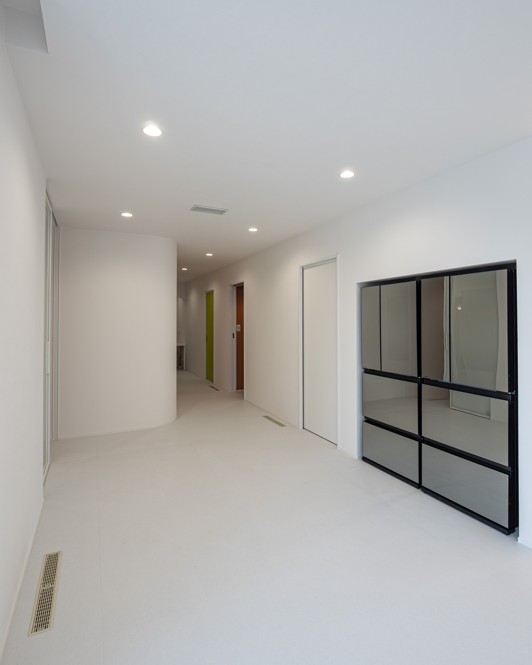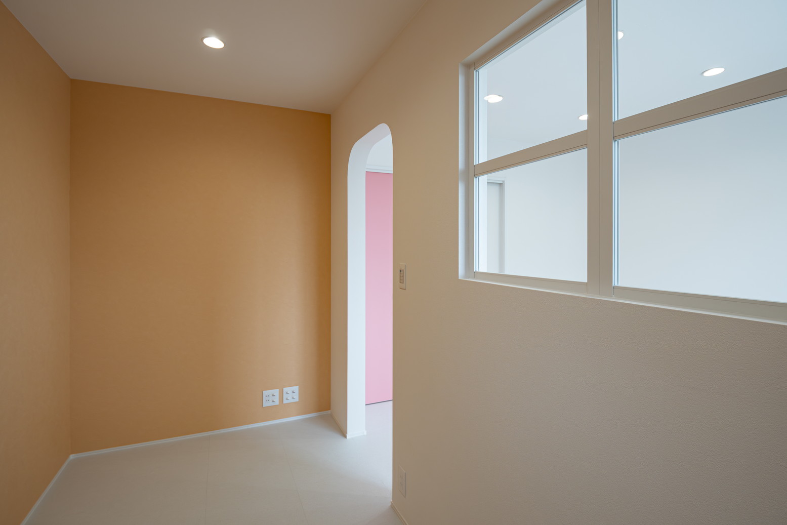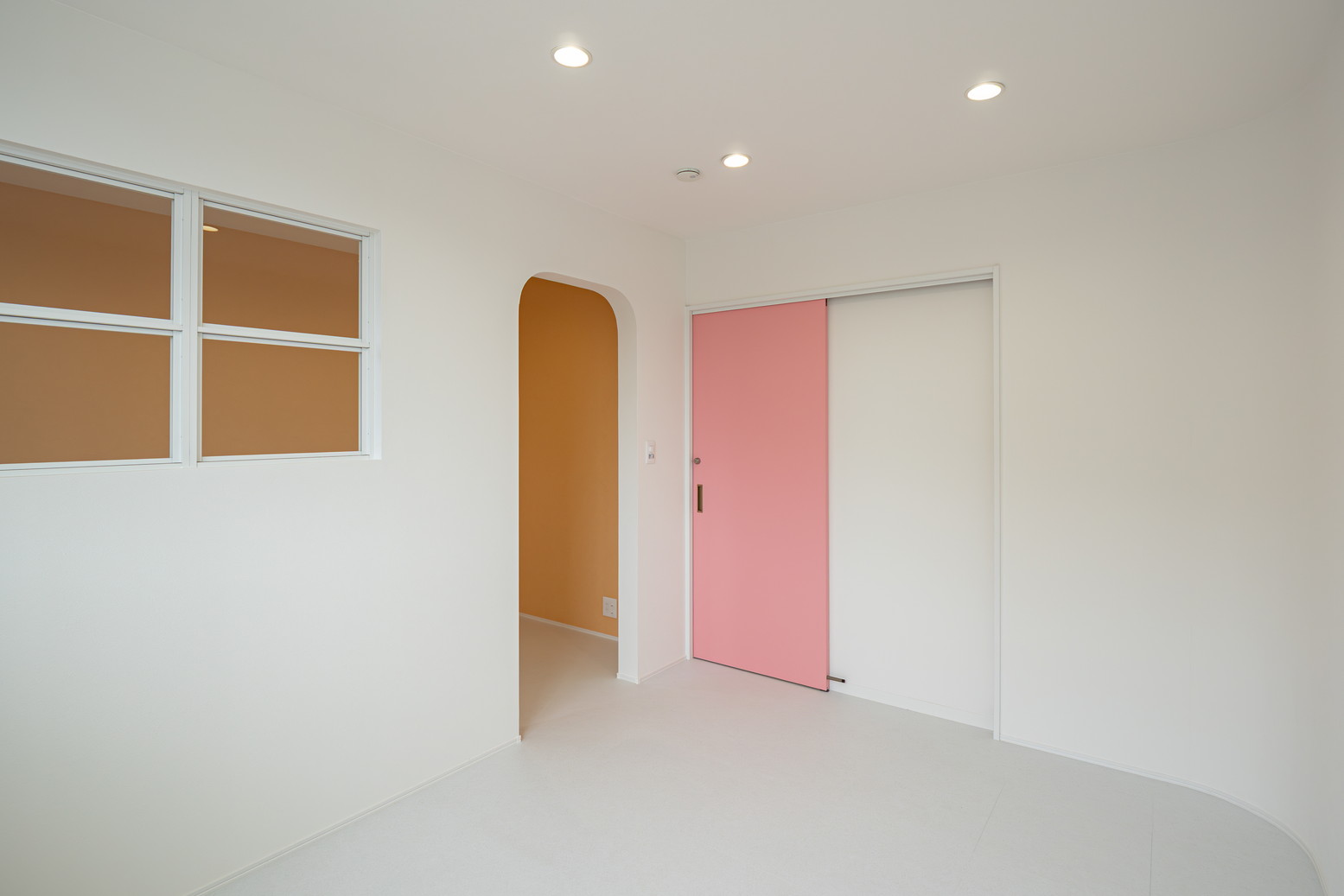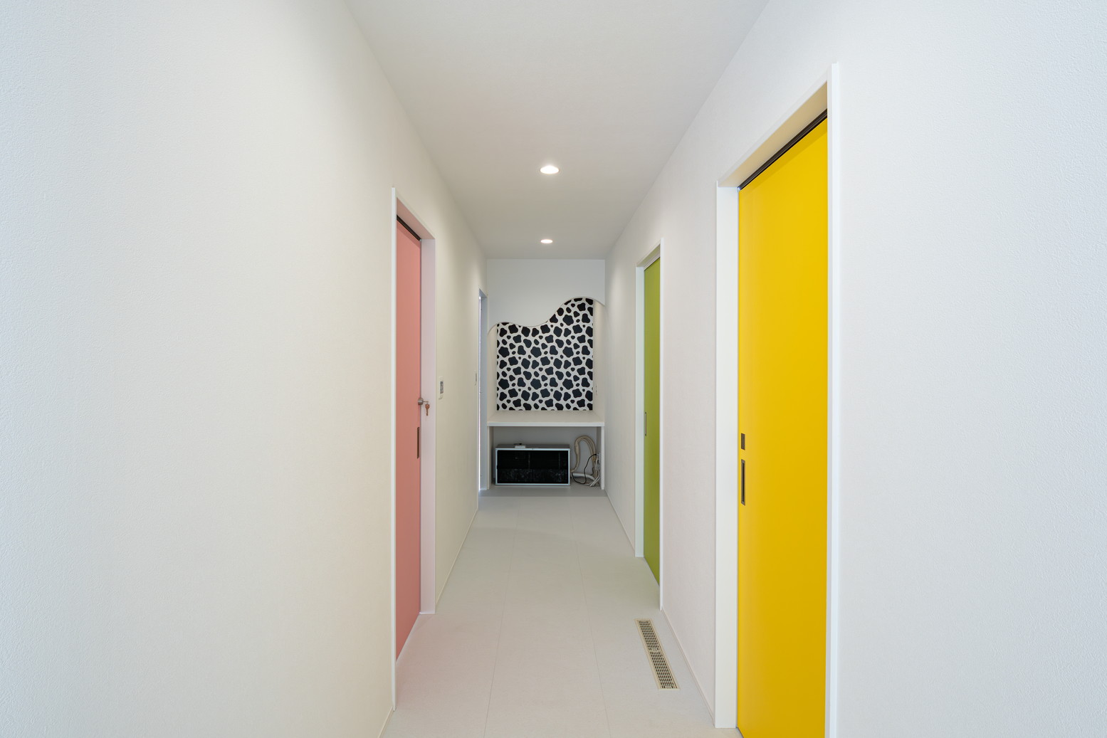廊下に並ぶ4つの扉は、それぞれ異なるカラーを採用し、LDKとは対照的に遊び心のある空間に仕上げました。