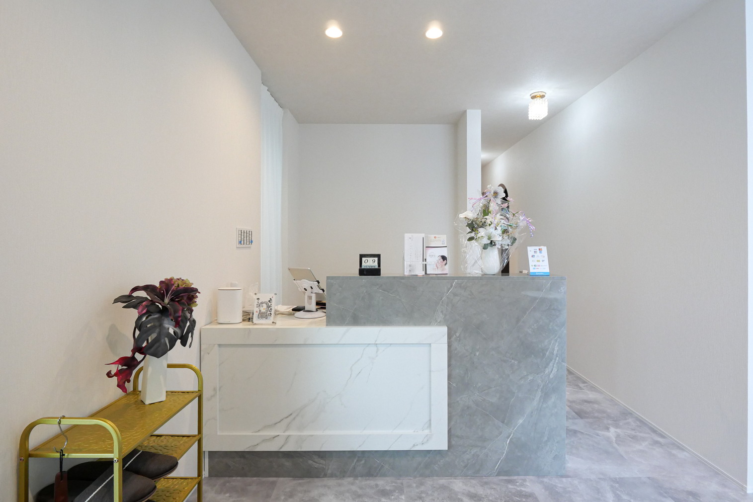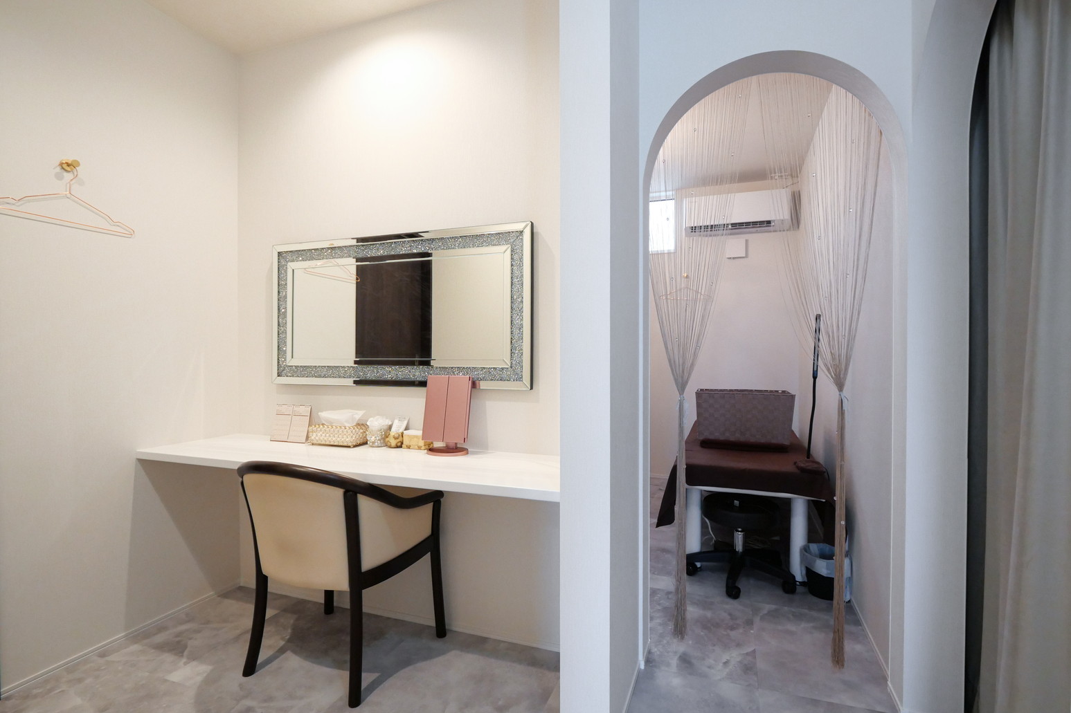 素材や照明を丁寧に選び、心地よく過ごせるサロン空間となっています。