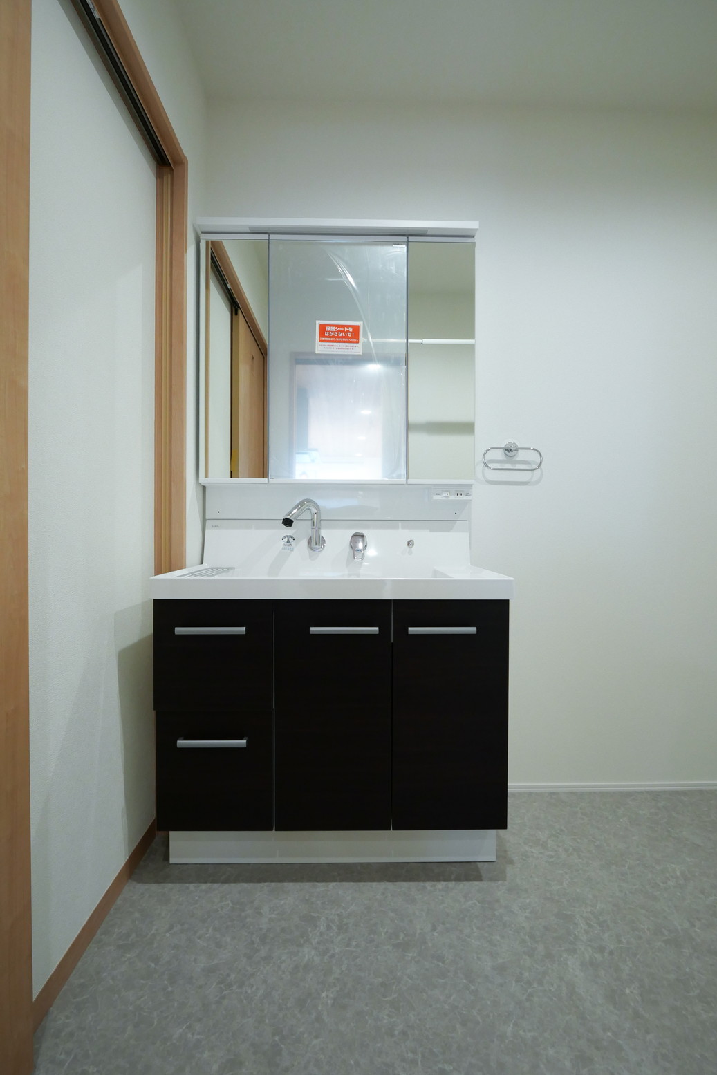 お風呂は1620サイズで少し大きめ。玄関やトイレ、お風呂等、手すりを設置しています。