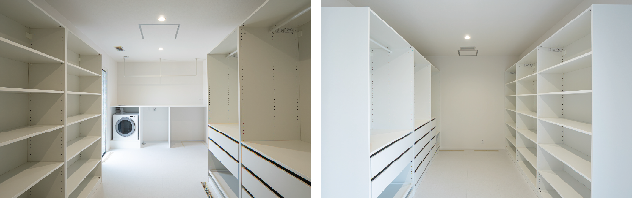 ランドリールームにはIKEAの収納を設け、乾太くんで乾かした洗濯物をその場で畳み、すぐにしまえるよう家事動線に配慮しました。