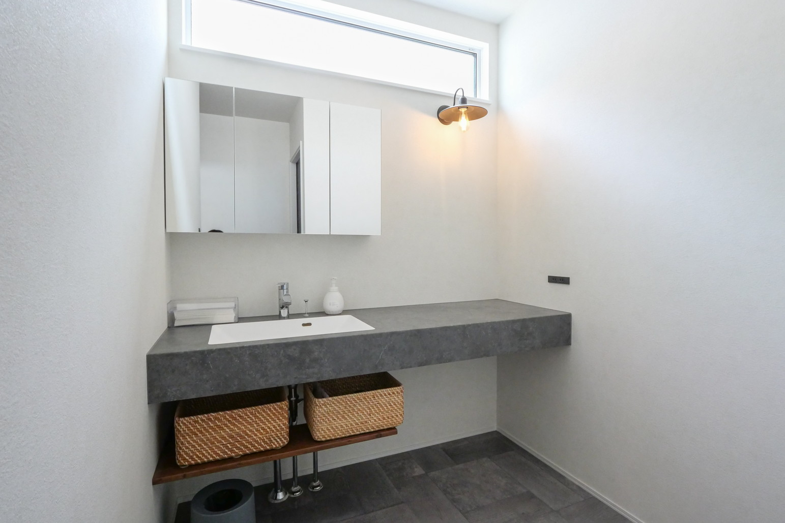 奥様『ありがとうございます。洗面も収納付きのミラーにして、中に化粧品や歯ブラシなどをしまえるようにしています。』